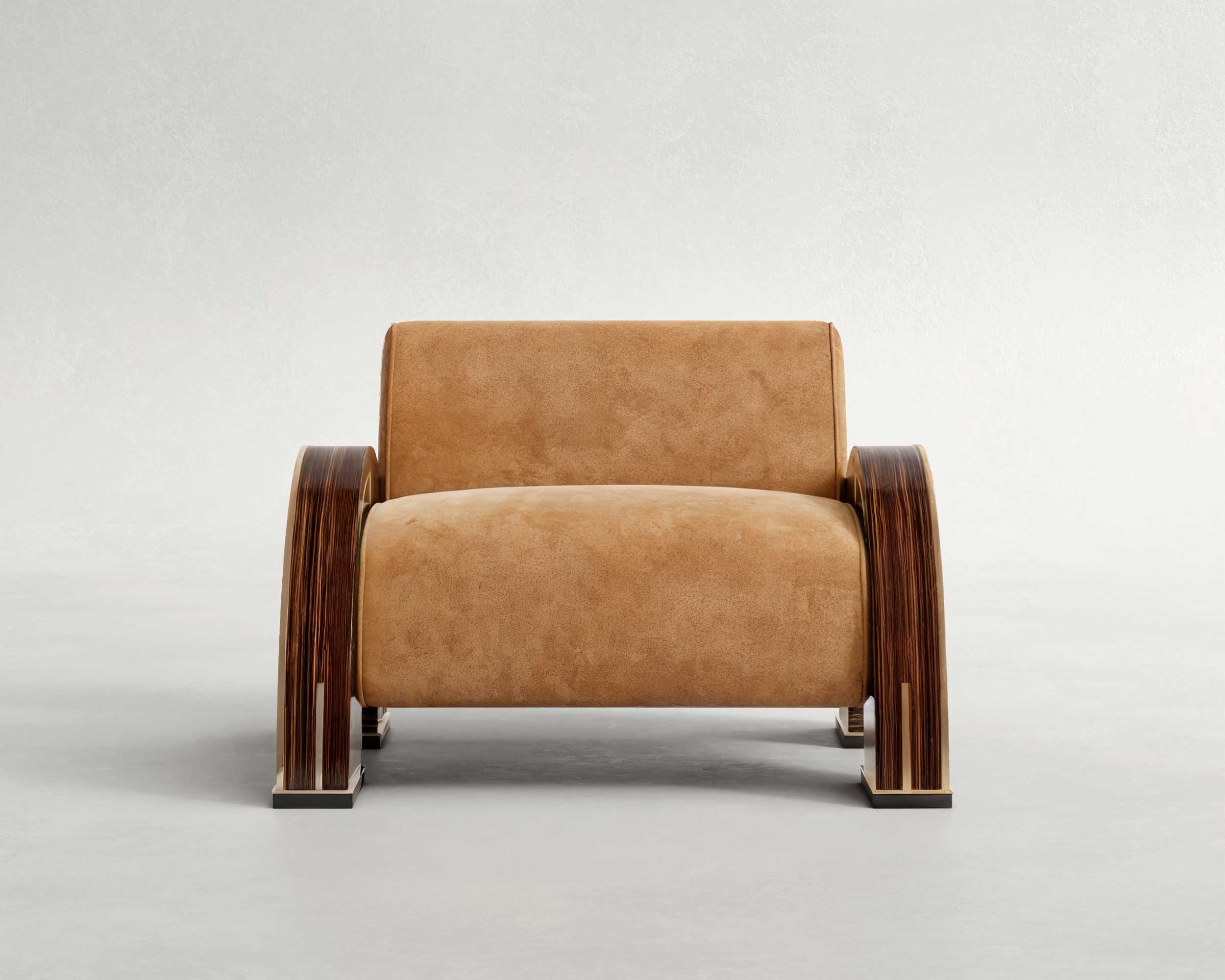 A rich, heritage-inspired amber that radiates warmth. This authentic split-grain leather features a luxurious, velvet-like nap that develops a beautiful patina over time, offering a classic, high-end aesthetic that pairs effortlessly with mid-century and contemporary silhouettes.
