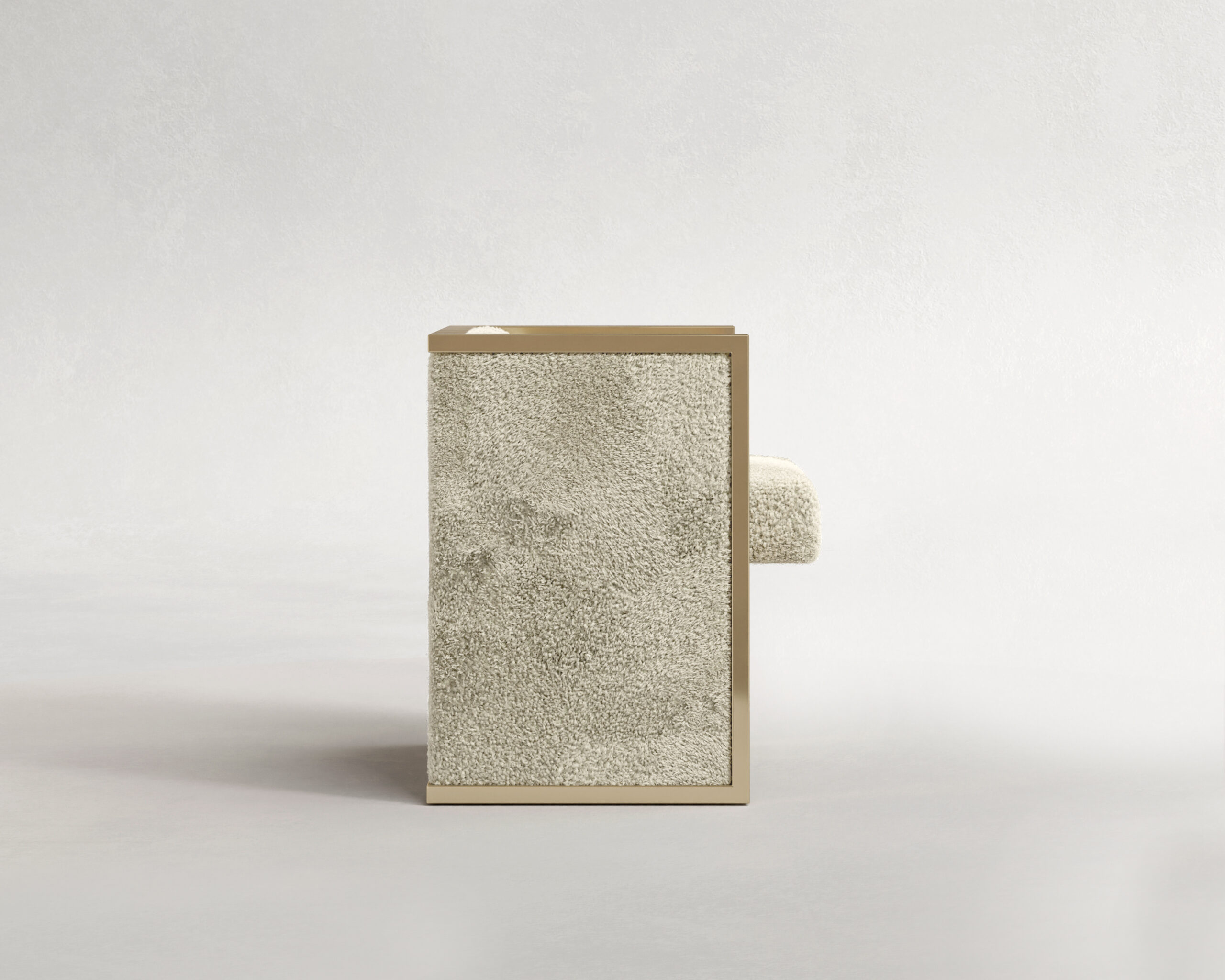 This is a piece defined by material tension: the cool, reflective precision of the metal against the organic, chaotic texture of the wool. Commissioned as a bespoke work, the Frame transforms the dining setting into a gallery space, offering a seating experience that is as visually arresting as it is comfortable.