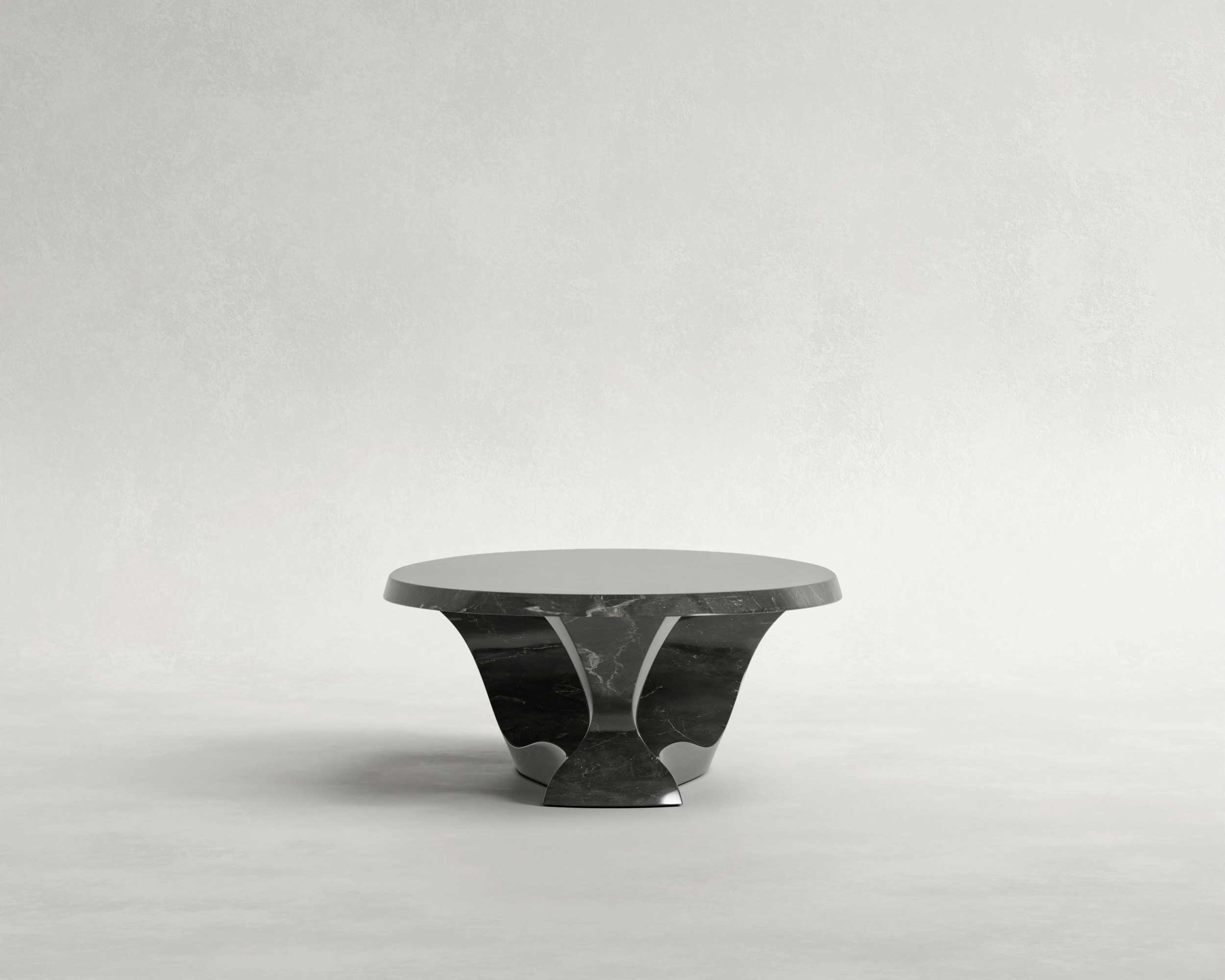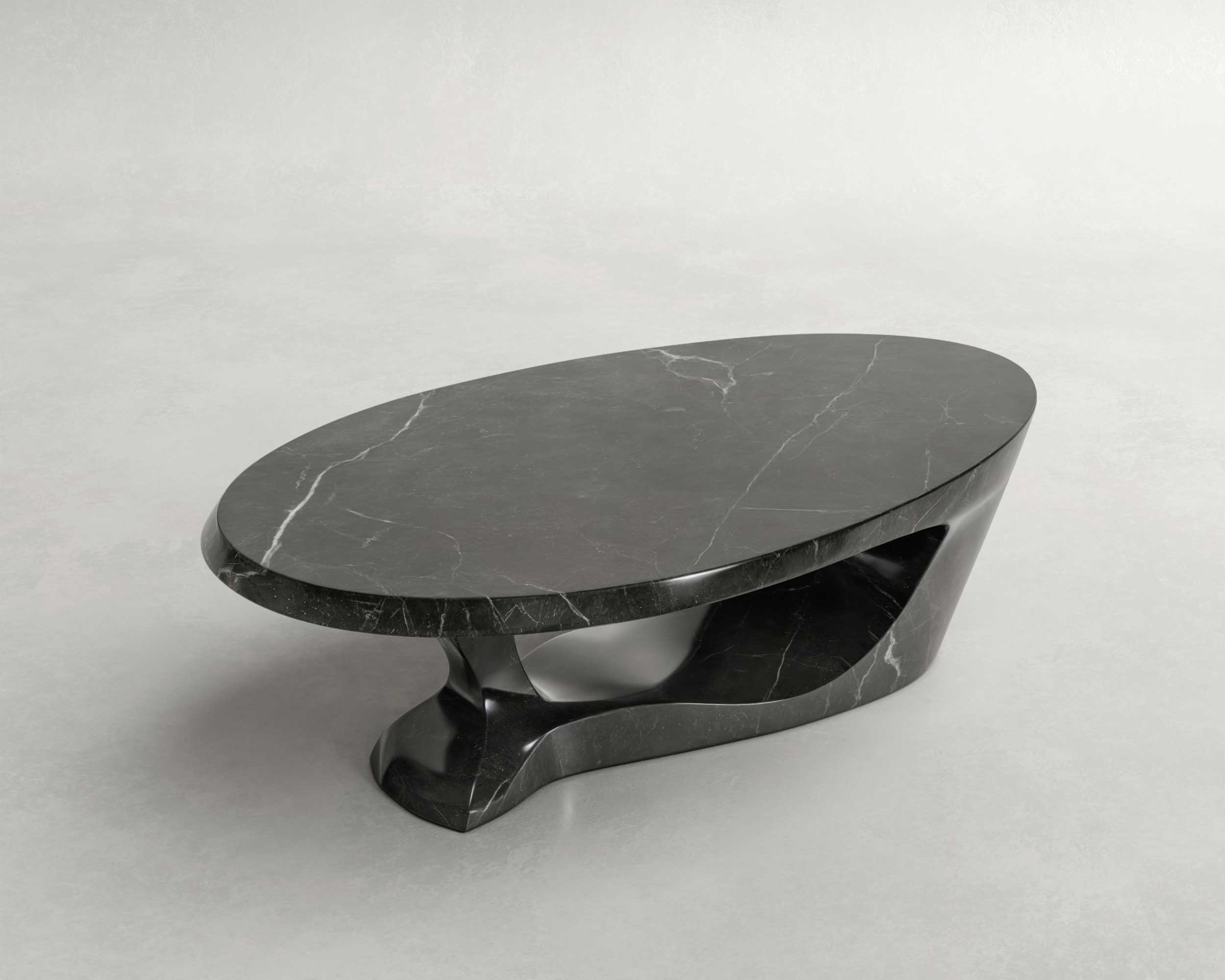 Orga Coffee Table captures the paradox of liquid stone. Hewn from a monolithic block of veined marble, its form rejects static geometry in favor of a biomorphic, kinetic silhouette. The design is defined by its dramatic central aperture, a deliberate use of negative space that allows light to interact with the density of the material.